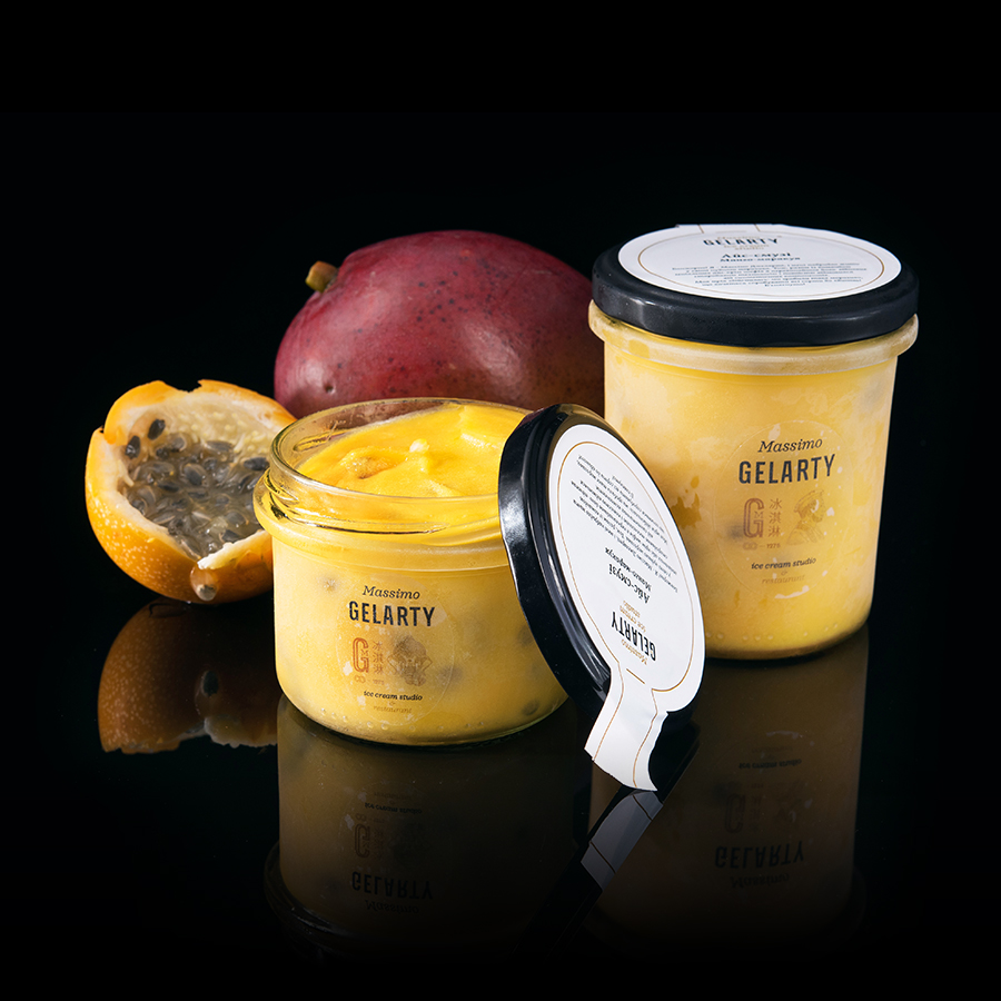 Склад: манго натуральне, маракуя натуральна, цукор, цукровий сироп, фреш лимонний,виноградний цукор, рисове борошно, цитрусові волокна. Енергетична цінність (калорійність) 100 г продукту: 160,0 ккал. Поживна (харчова) цінність 100 г продукту: жири 0,1 г, білки 0,3 г, вуглеводи 45,8 г.